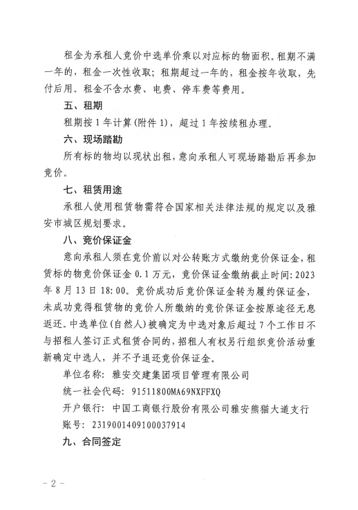 大红鹰dhy(中国)集团项目管理有限公司关于雅安多营青衣江大桥左岸桥下可利用地块挂网招租的公告附件