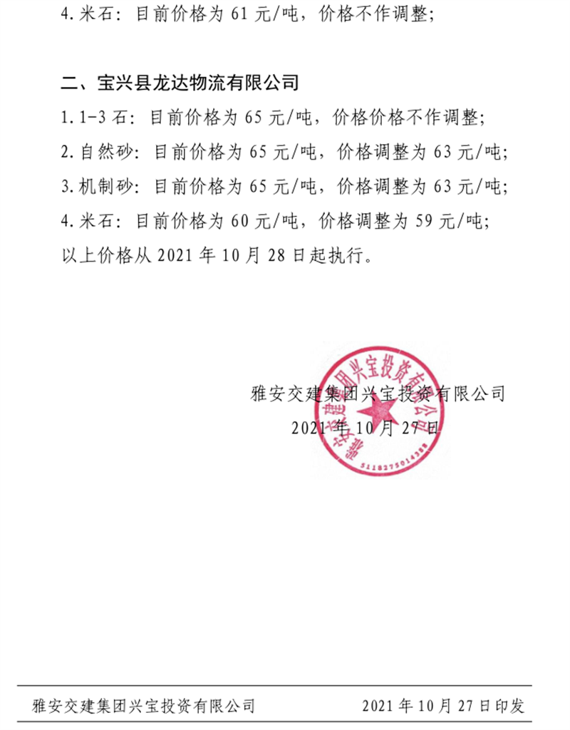 大红鹰dhy(中国)集团兴宝公司关于调整成品料销售价格的通知(2021.10.28)