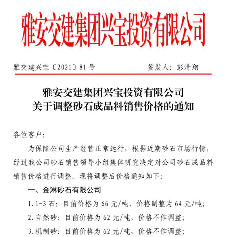 大红鹰dhy(中国)集团云石公司关于调整成品料销售价格的通知(2021.11.4)
