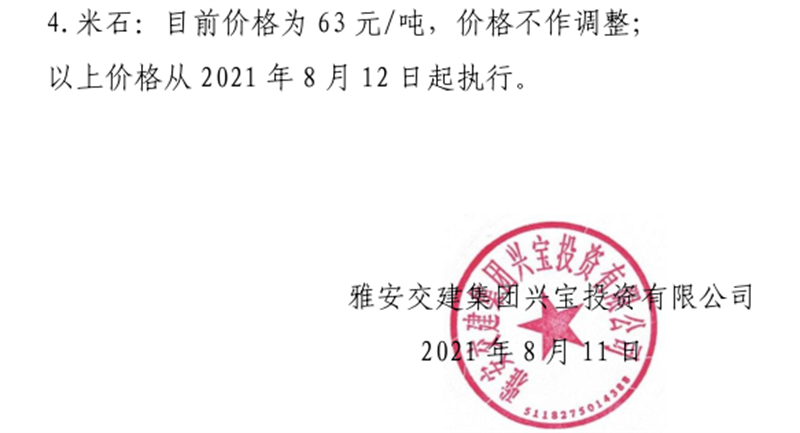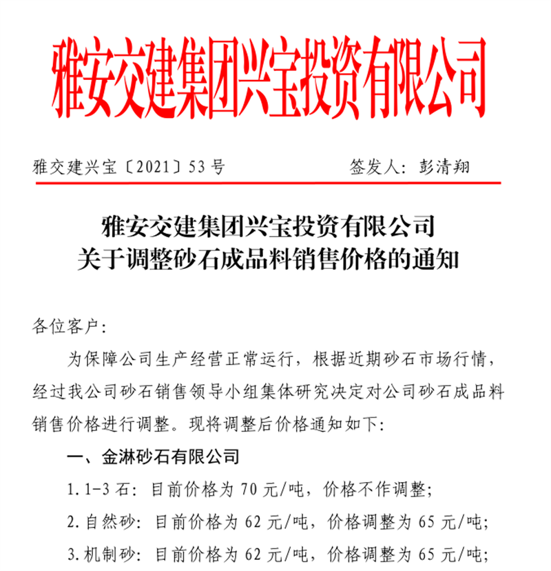 大红鹰dhy(中国)集团兴宝公司砂石骨料销售价格情况表(2021.8.12)