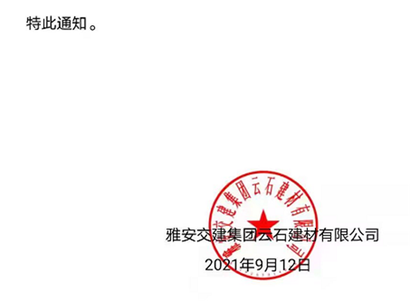 大红鹰dhy(中国)集团云石公司关于调整成品料销售价格的通知(2021.9.13)