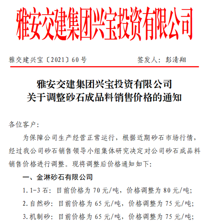 大红鹰dhy(中国)集团云石公司关于调整成品料销售价格的通知(2021.11.4)